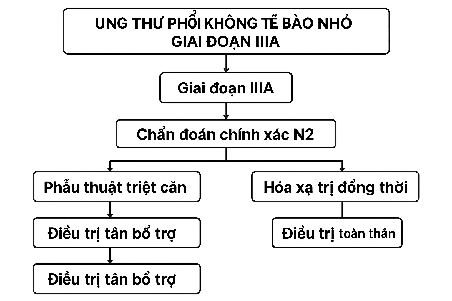 Ung thư phổi giai đoạn IIIA là thách thức thực sự trong điều trị do tính không đồng nhất của bệnh. Chẩn đoán chính xác N2, đánh giá khả năng phẫu thuật và phối hợp đa mô thức là yếu tố then chốt để cải thiện kết quả điều trị. Phẫu thuật chỉ nên được lựa chọn sau khi đánh giá kỹ lưỡng qua hội chẩn đa chuyên khoa và cân nhắc lợi ích-rủi ro từng trường hợp. Xu hướng hiện tại là cá nhân hóa điều trị tối đa dựa trên gen, hình ảnh học và đáp ứng sinh học.