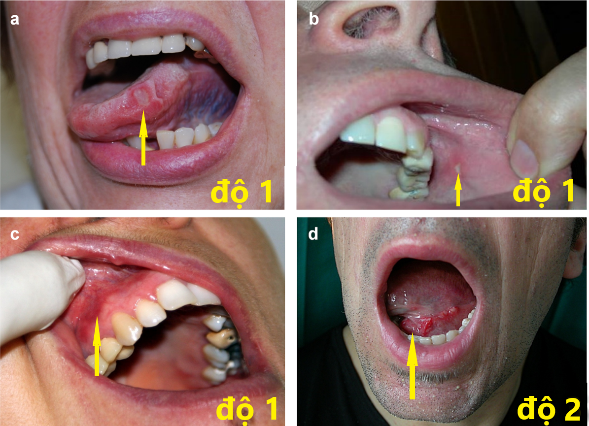 Hình ảnh viêm miệng độ 1, độ 2 do thuốc điều trị đích